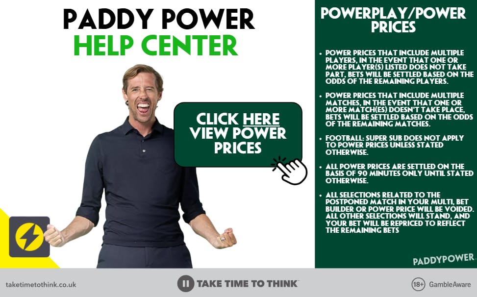 - All powerplay/Power Price markets are subject to Paddy Power terms and conditions. If a market is based on a particular sport, then the rules of that sport apply to the powerplay/Power Price market.