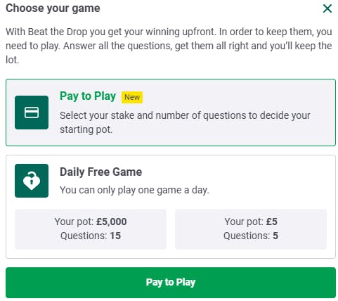 It's possible to pay to play Beat the Drop and reduce your number of questions, while boosting your potential winnings.