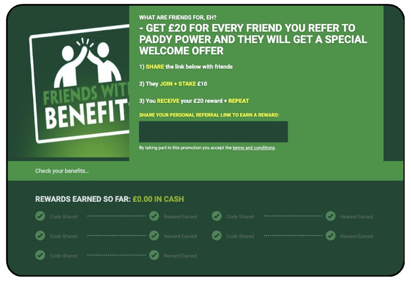 Got some friends? You can get £20 for every friend you refer to Paddy Power!