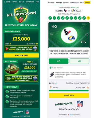 - You can access Paddy Power NFL Showdown via the App or Desktop Site