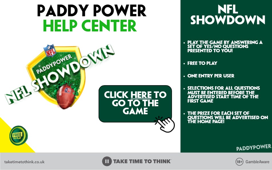 - Paddy Power NFL Showdown is a free to play game that we offer. You play the game by answering a set of Yes/No questions presented to you within the game!